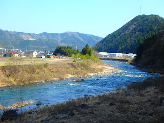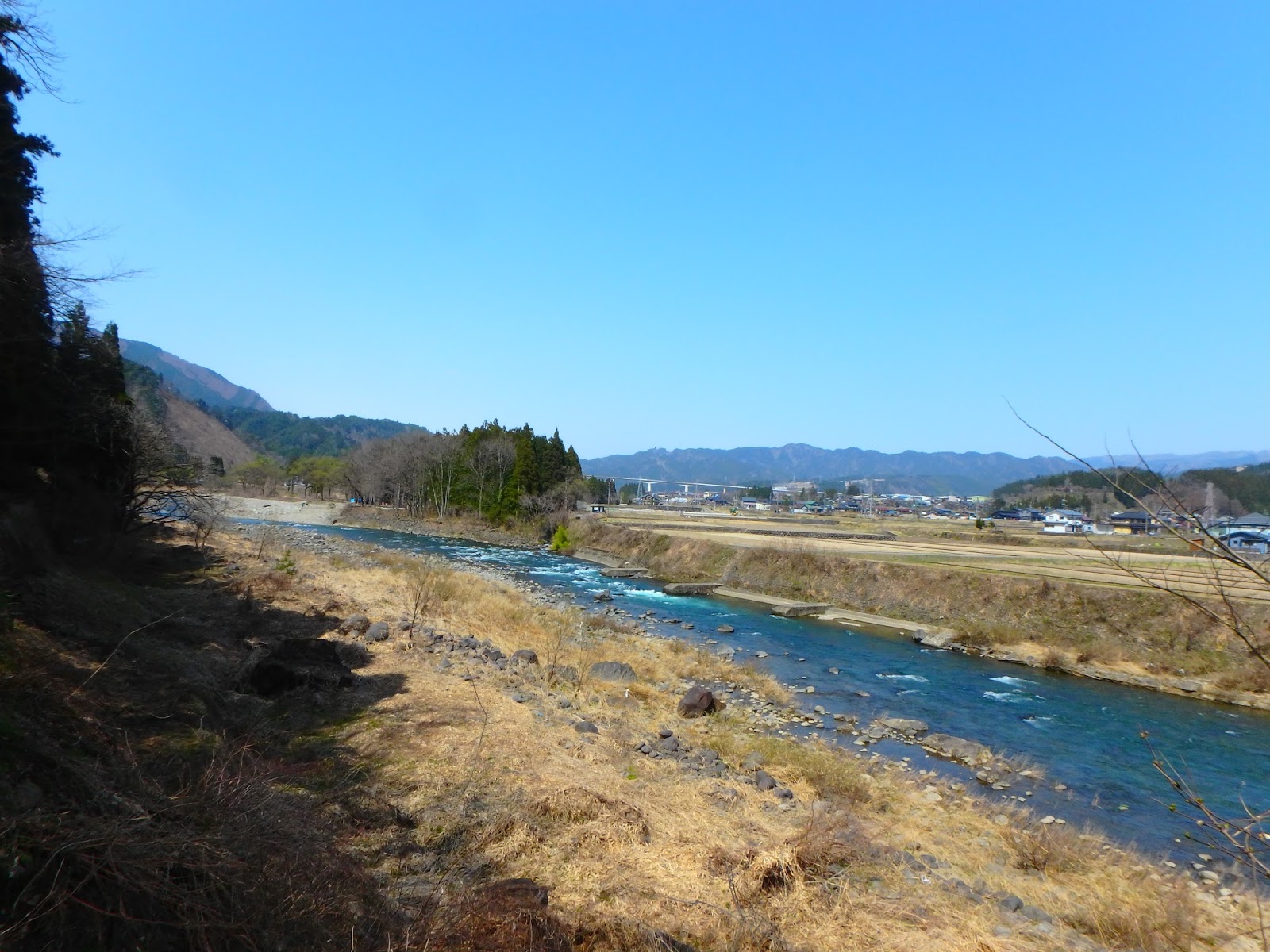 川は町の西端、山際を流れます。