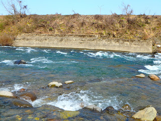 さあ、当方も装備一式を身につけて、細道は河岸道路を徒歩で上流に。