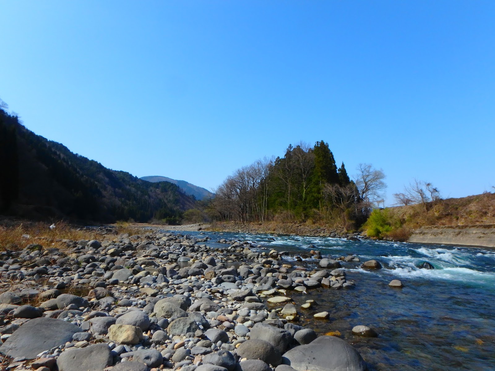 春の長良川上流。